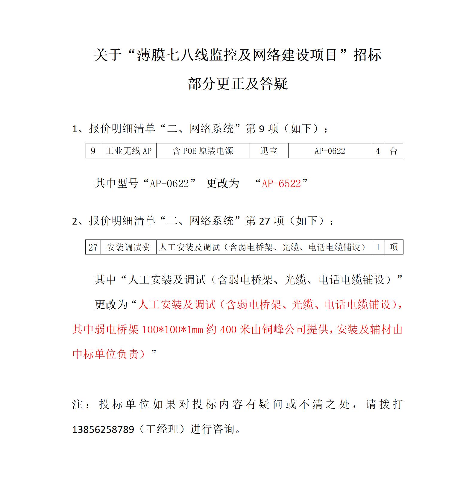 銅峰薄膜七八線監(jiān)控及網(wǎng)絡(luò)項(xiàng)目—招標(biāo)清單更改及答疑