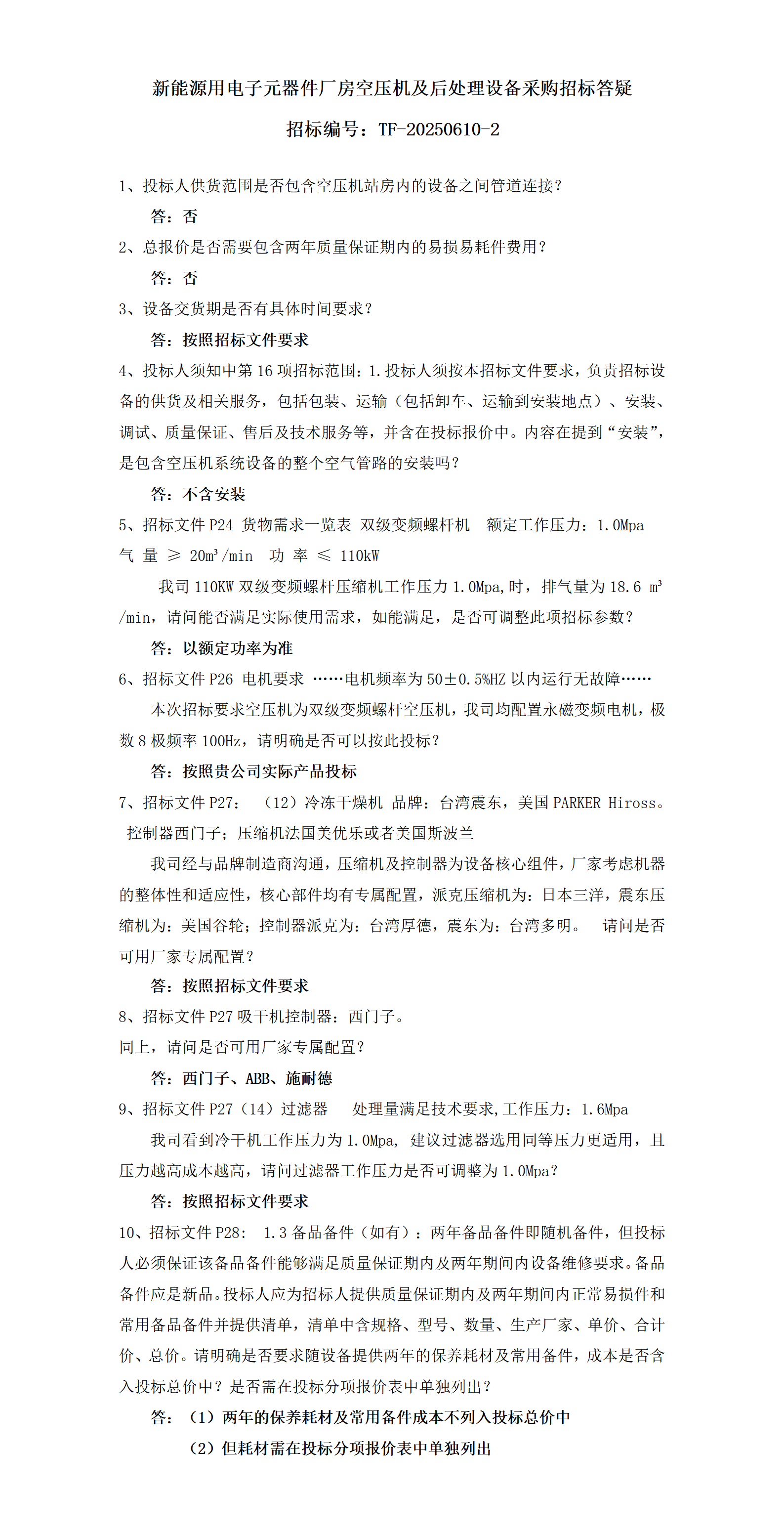 空壓機(jī)及后處招標(biāo)答疑(招標(biāo)編號:TF-20250610-2)_01