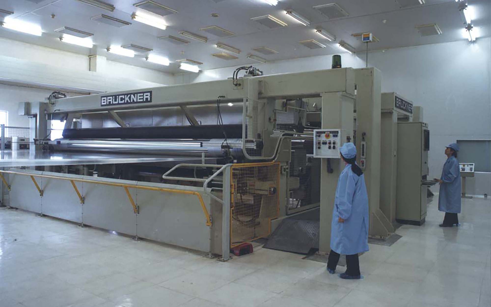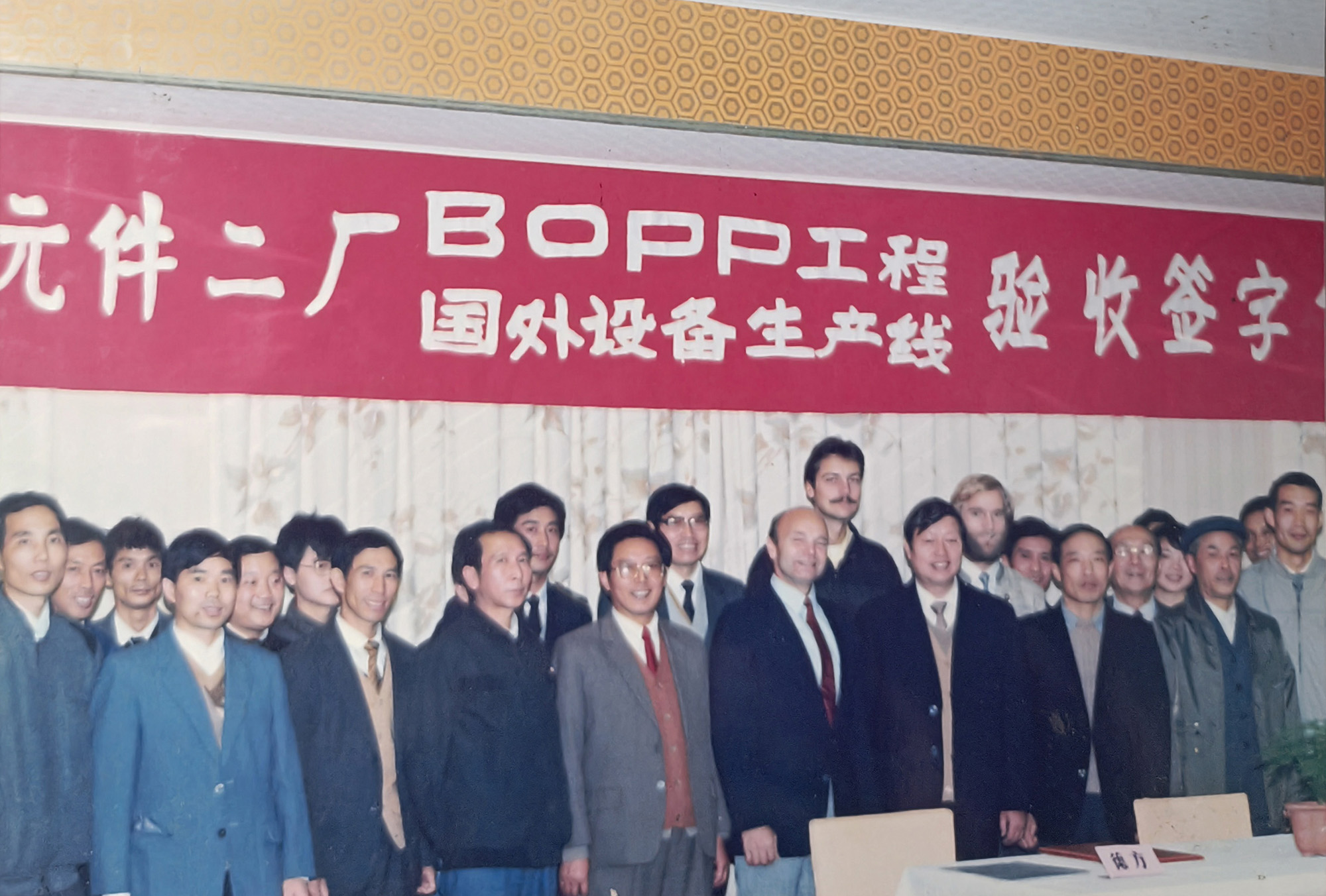 銅峰“老一線”于1989年建成投產(chǎn)。上世紀(jì)80年代,當(dāng)時(shí)國(guó)內(nèi)電容器用聚丙烯膜幾乎完全依賴進(jìn)口,嚴(yán)重制約了我國(guó)電容器等相關(guān)產(chǎn)業(yè)的發(fā)展。銅峰公司前身銅陵市無線電元件二廠積極響應(yīng)國(guó)家需求,決定從國(guó)外引進(jìn)雙向拉伸電容器用聚丙烯膜生產(chǎn)線。1985年項(xiàng)目啟動(dòng),經(jīng)過一系列籌備工作,1986年獲得國(guó)家計(jì)委批準(zhǔn)立項(xiàng),并被列入國(guó)家 “七五” 機(jī)械電子工業(yè)重點(diǎn)技改項(xiàng)目。1988年,主線和相關(guān)輔助設(shè)備成功引進(jìn)。經(jīng)過一年多的緊張建設(shè),1989年生產(chǎn)線正式投產(chǎn)?!袄弦痪€”的建成投產(chǎn),是銅峰發(fā)展史上具有重要意義的轉(zhuǎn)折點(diǎn)。該線加速了銅峰公司產(chǎn)品結(jié)構(gòu)調(diào)整和轉(zhuǎn)型步伐,并由此形成了全國(guó)唯一的“電工三膜”(電容薄膜、金屬化膜和薄膜電容器)一條龍的生產(chǎn)格局,使企業(yè)的經(jīng)濟(jì)規(guī)模和技術(shù)水平躍上一個(gè)新臺(tái)階。
