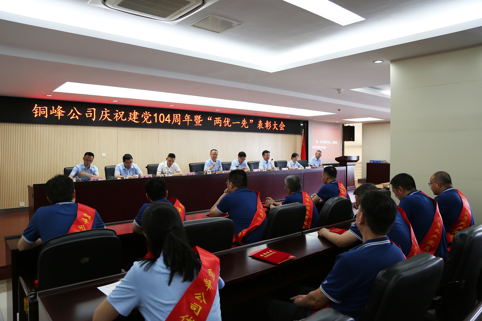 為熱烈慶祝中國共產(chǎn)黨成立104周年,表彰先進(jìn)、樹立榜樣,激勵(lì)廣大黨員干部職工在新征程上展現(xiàn)新作為,6月27日下午,公司在辦公大樓二樓職教室隆重召開慶祝建黨104周年暨“兩優(yōu)一先”表彰大會(huì)。公司黨委書記、董事長黃明強(qiáng)出席大會(huì)并講話,黨委委員、總經(jīng)理鮑俊華宣讀表彰決定,黨委副書記潘世宇主持會(huì)議并就貫徹落實(shí)會(huì)議精神作出部署。公司黨委領(lǐng)導(dǎo)班子成員和公司級(jí)黨員領(lǐng)導(dǎo),紀(jì)委委員,各黨(總)支部書記、委員,“兩優(yōu)一先”表彰對(duì)象、黨員代表、新黨員、入黨積極分子代表等參加會(huì)議。